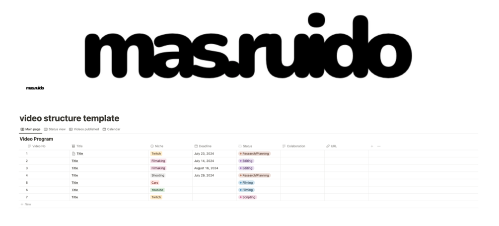 Are you finding it challenging to manage your video production process? Struggling to keep track of ideas, scripts, recording schedules, and publication plans? Say hello to effortless organization with our Notion Video Content Template. Designed specifically for content creators, this template will streamline your workflow and help you stay on top of every aspect of your video projects.
